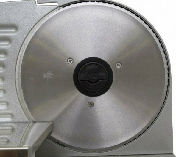 Лучшие цены. Большой резак из нержавеющей стали, диаметр 190 мм Универсальное зубчатое лезвие Корпус мотора из литого алюминия Металлический корпус Металлические направляющие Наклонный стол с держателем и защитным кожухом Регулировка толщины резки (0-15 мм) Складной корпус, легко очищаемый Нескользящие прорезиненные ножки Мощность: 150 Вт макс. Магазины в вашем городе.