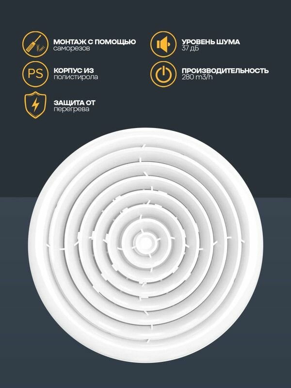 Вентилятор AURAMAX D4, вытяжной, осевой, полистирол, 100мм, 14Вт, 90м³/ч, белый 800 ₽ Подробнее