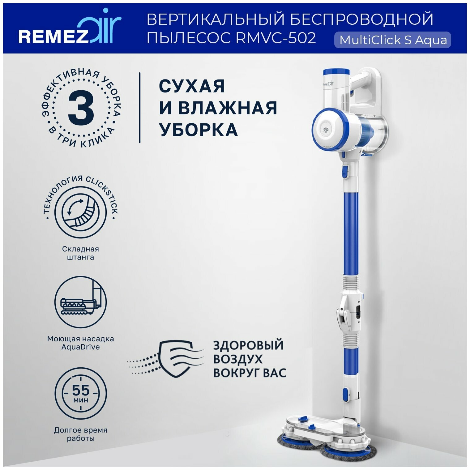 Пылесос Вертикальный пылесос REMEZAIR RMVC-502 160 Вт, белый/синий, питание от аккумулятора (RMVC-502)