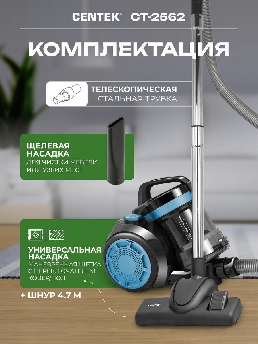 Пылесос Centek CT-2562 (голубой) 6 671 ₽ Подробнее