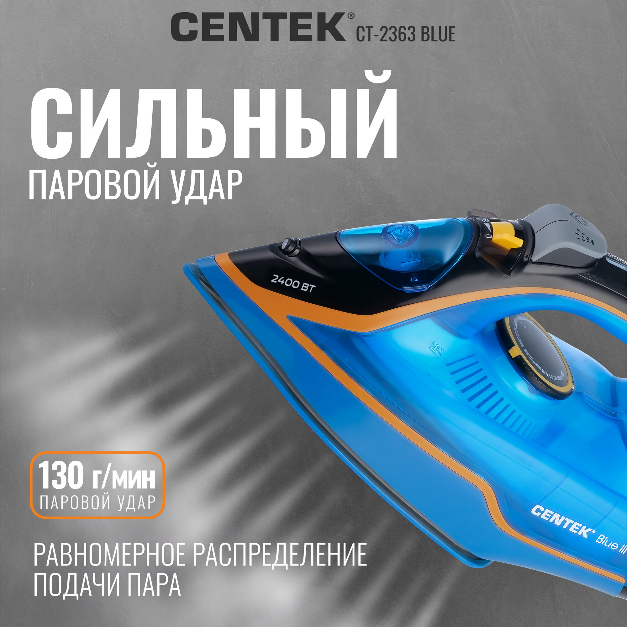 Утюг Centek CT-2317 BLUE (синий) 2800 Вт, керам. подошва, пар. удар, 1 шт.