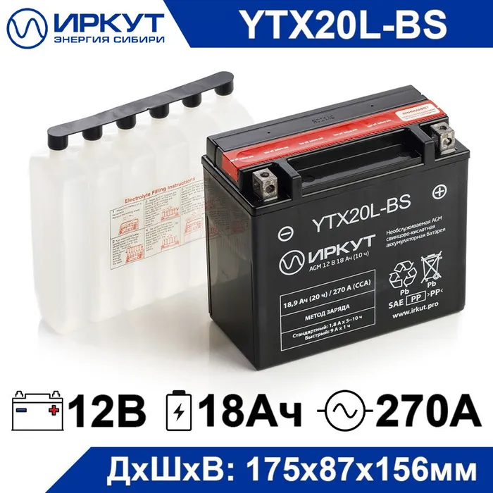Мото аккумулятор иркут YTX20CH-BS
