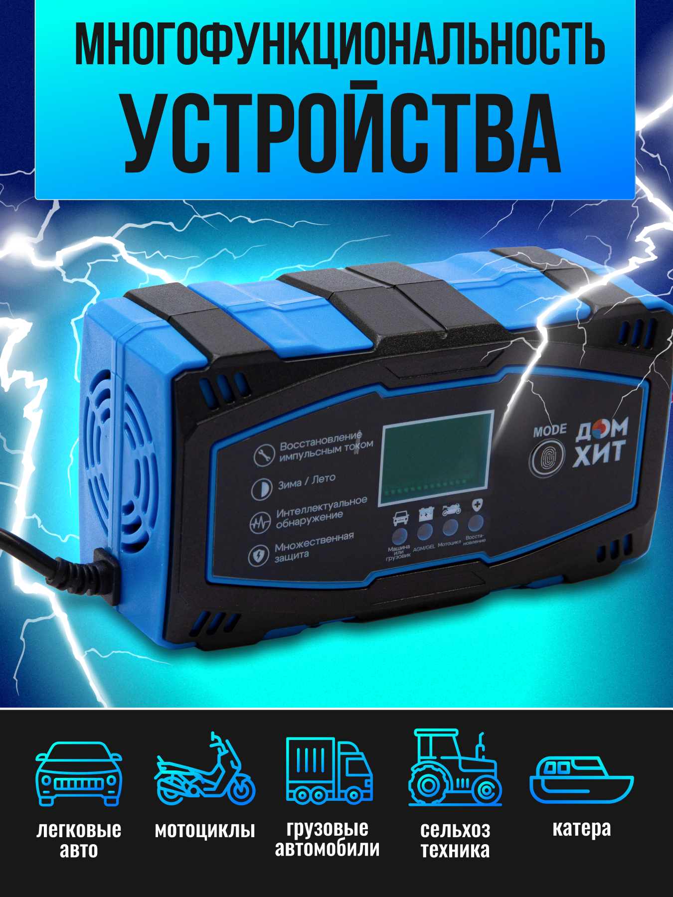 Пуско-зарядные устройства Зарядное устройство Дом Хит для автомобильного аккумулятора, цвет синий, защита от перегрузки 12В, 6А, авто и мотоциклов