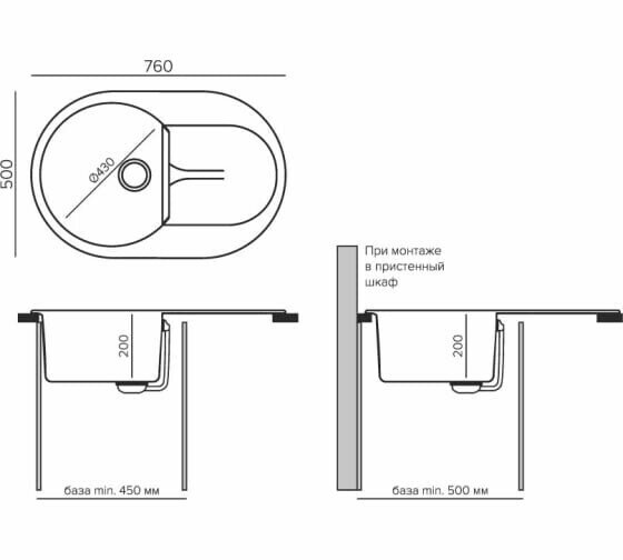 | Минимальная ширина шкафа (базы) | 450 мм |