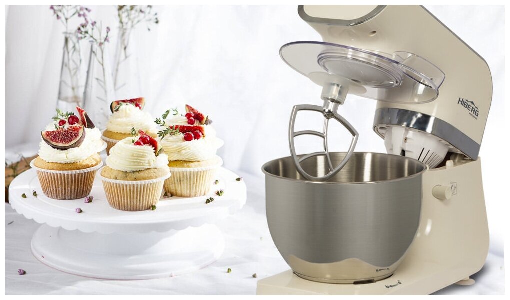 Миксер планетарный HIBERG MP1040 DY,1000 Вт, 4 л нерж.чаша, 6 режимов, бежевый