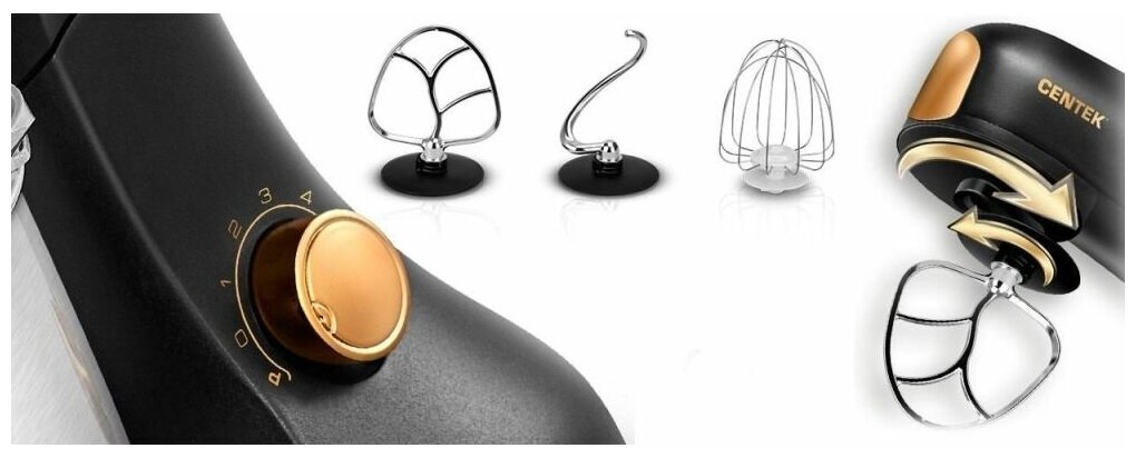 Планетарный миксер Centek CT-1137 <черн/зол> 1500Вт литой, чаша 6л, 3 насадки, 6 ск. +имп.
