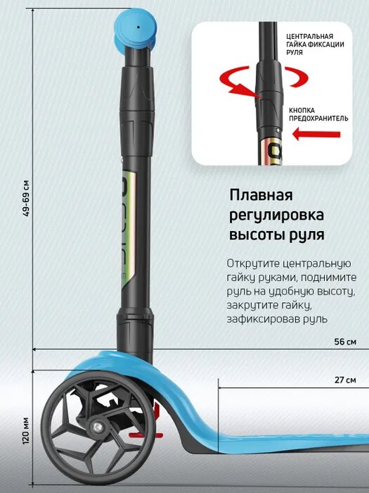 Детский 3-колесный самокат Buggy Boom Alfa Mini R (цветные ручки), голубой флюр