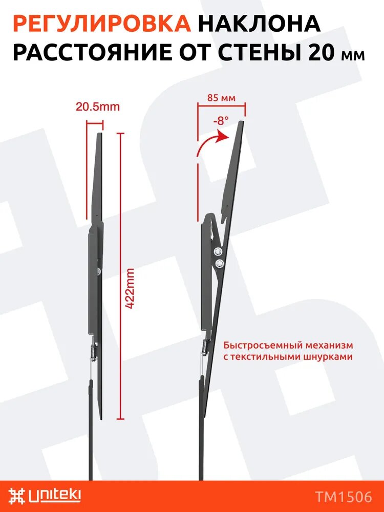 Кронштейн UniTeki TM1506 SLIM наклонный, быстросъемный для телевизоров и мониторов от 32 до 55 дюймов