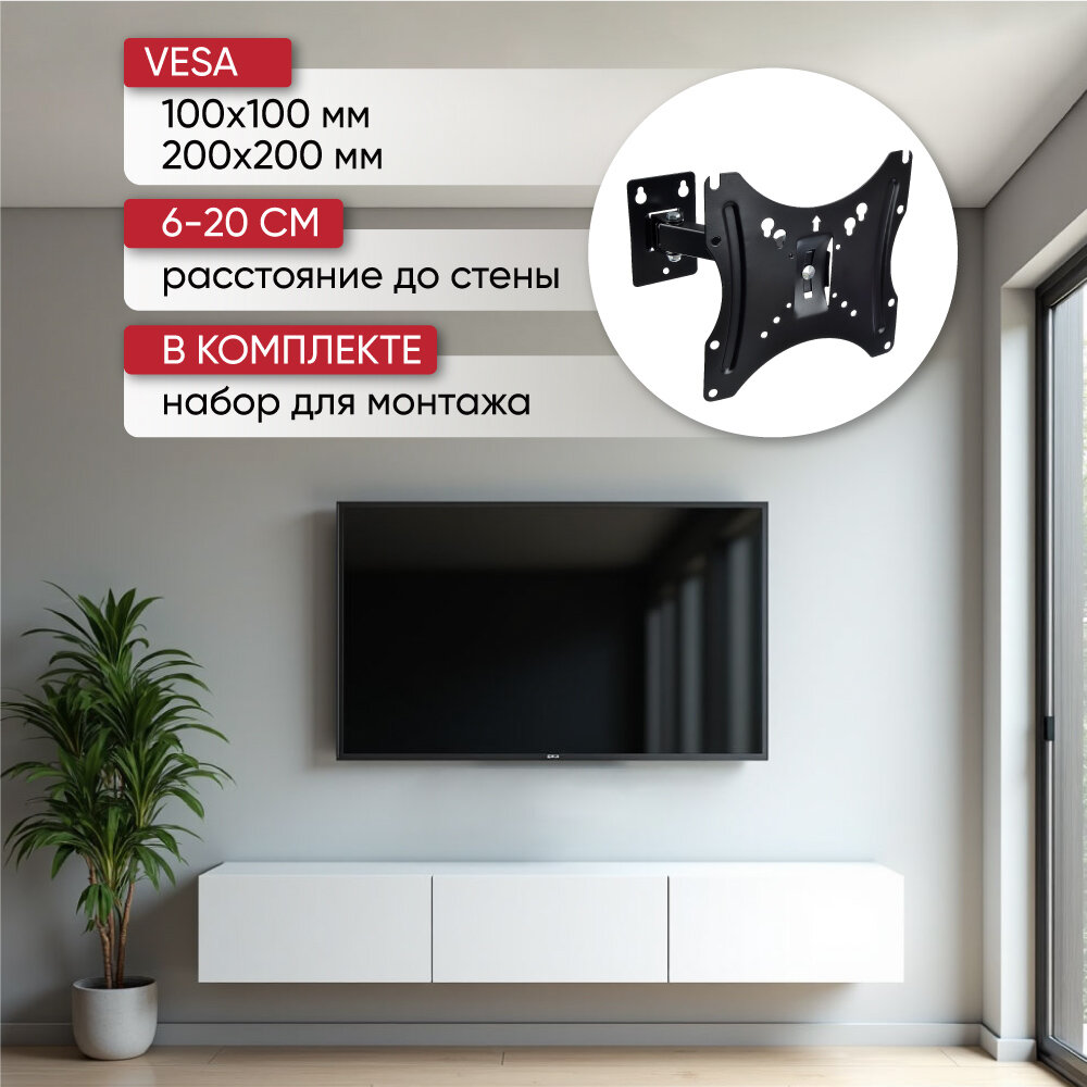 Подставка/крепление Кронштейн для ТВ 14"- 42" наклонно-поворотный LEBEN, до 30 кг, металл