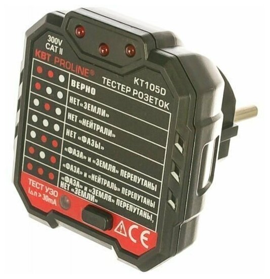 Розеточный Тестер Тестер розеток и УЗО КВТ KT 105D "PROLINE"