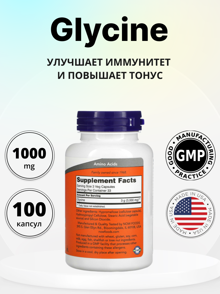 Now foods Glycine 1000 мг 100 vcaps
