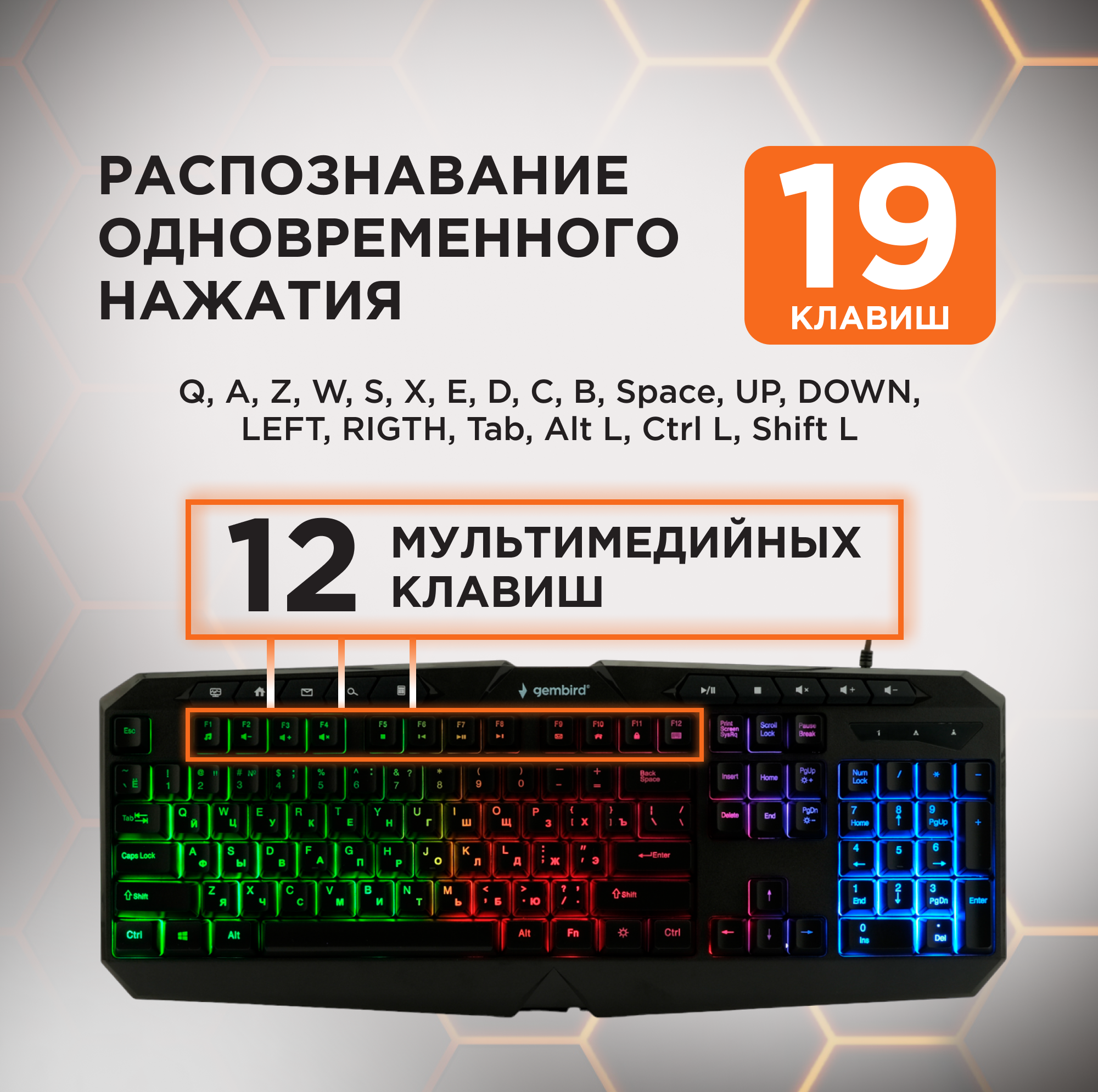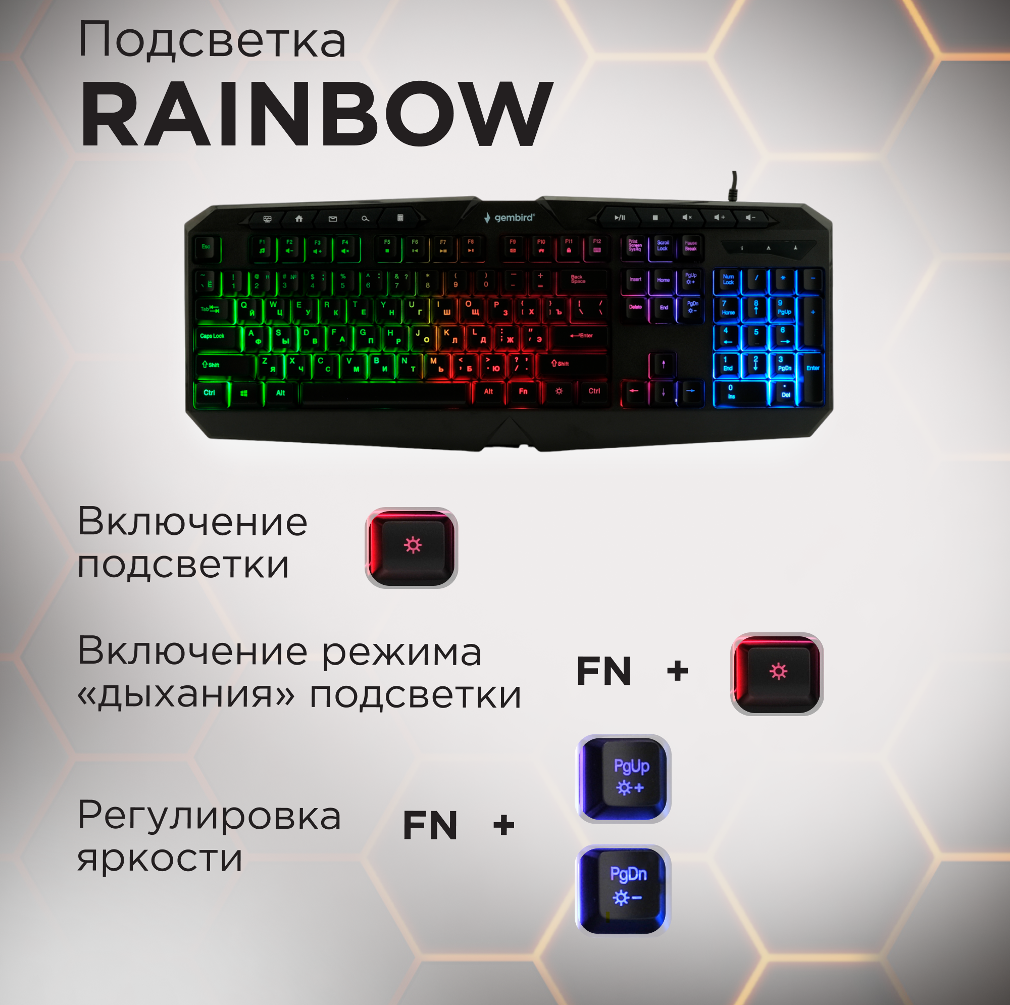 Клавиатура с подсветкой Gembird KB-240L USB черный 104 клавиши подсветка Rainbow кабель 1.5м