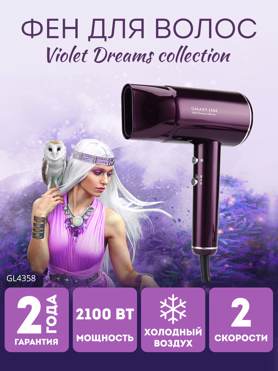 Фен Фен GALAXY LINE GL4358, мощность 2100Вт, фиолетовый, концентратор, вращение шнура