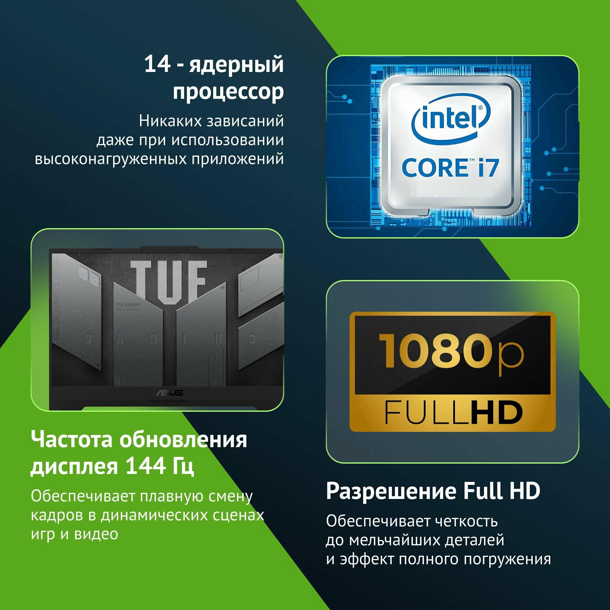 Ноутбук ASUS TUF Gaming FX507ZM-RS73, 15.6" (1920x1080) IPS 144Гц/Intel Core i7-12700H/16ГБ DDR5/1ТБ SSD/GeForce RTX 3060 6ГБ/Без ОС, серый [90NR09A1-M001C0] 127 500 ₽ Подробнее