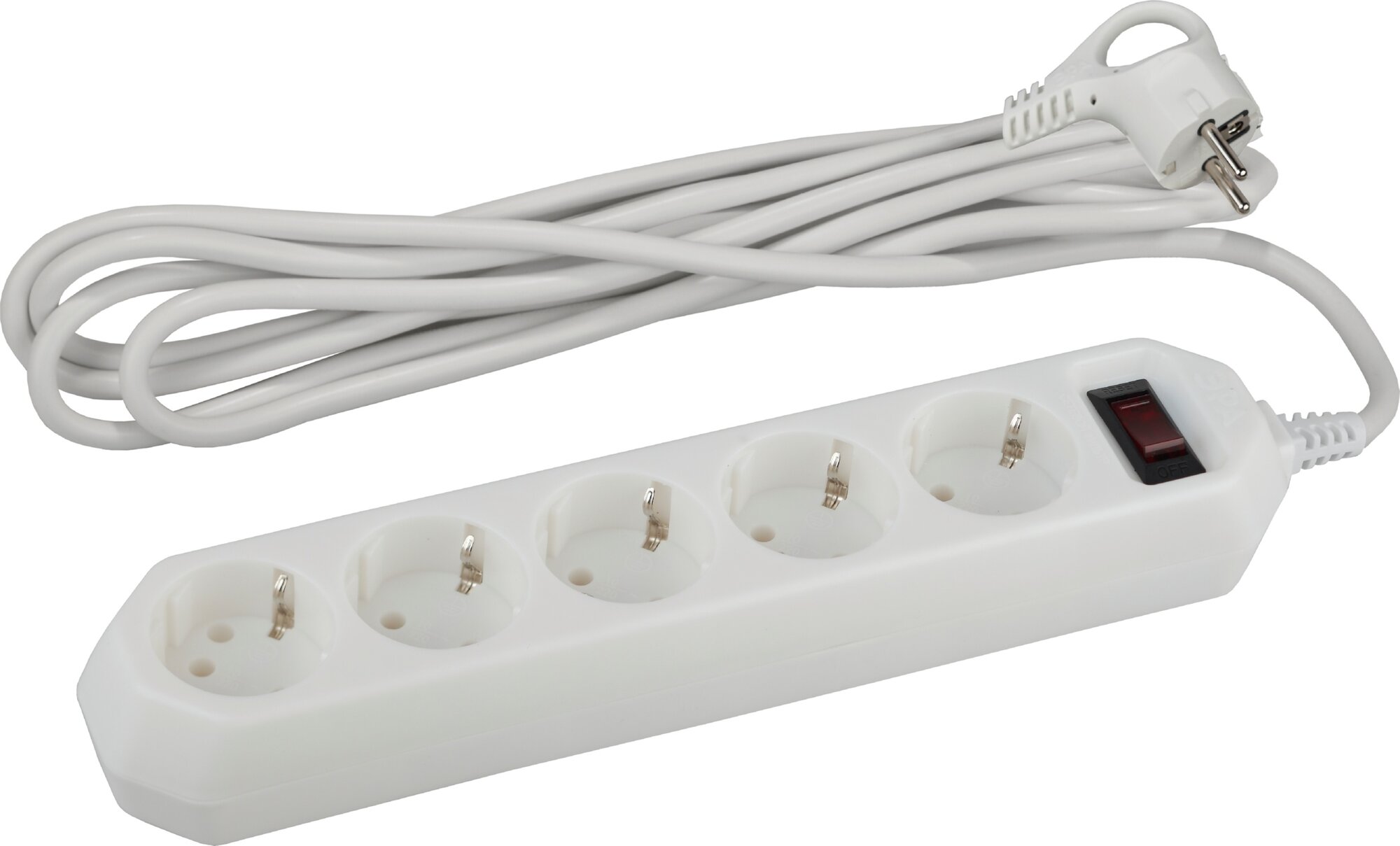Удлинитель с сетевым фильтром 5х1.5м с заземл. 10А IP20 ПВС 3х0.75 с выкл. бел. Эра Б0019031
