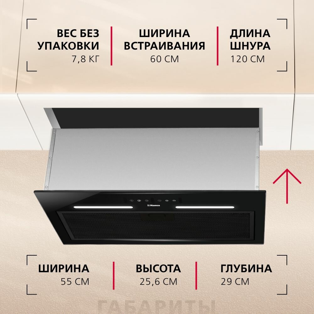 Вытяжки Встраиваемая вытяжка Hansa OMP6553BGH, 55 см, с типом управления жесты+сенсорное, черный, с автоотключением
