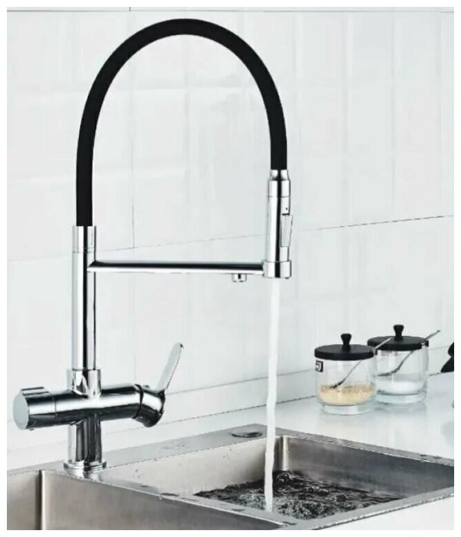 Смеситель Haiba HB76855-7 для кухни с гибким изливом и подключением фильтра, черный