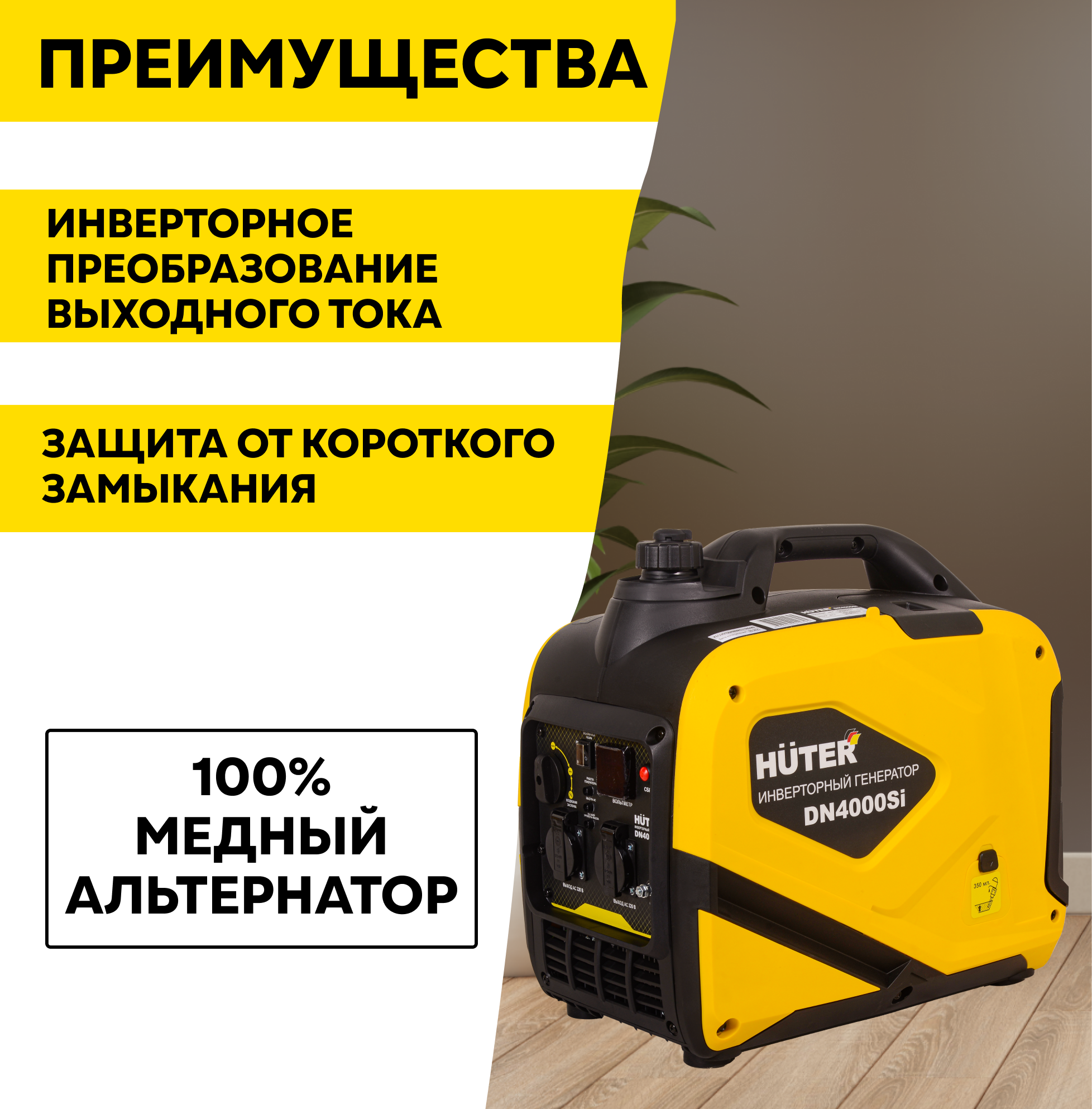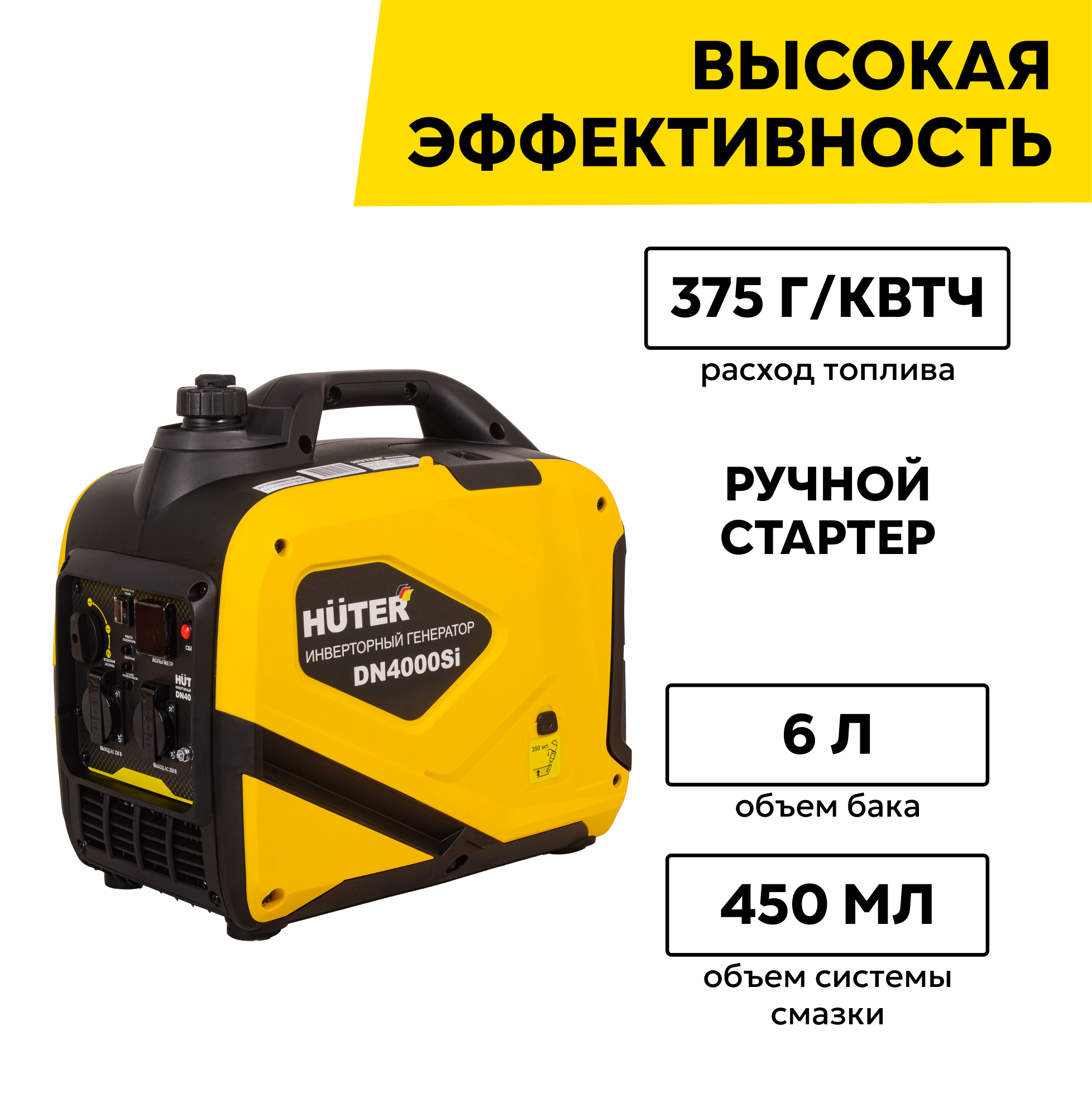 Генераторы Инверторный бензиновый генератор DN4000Si Huter, 3.3 кВт, ручной запуск