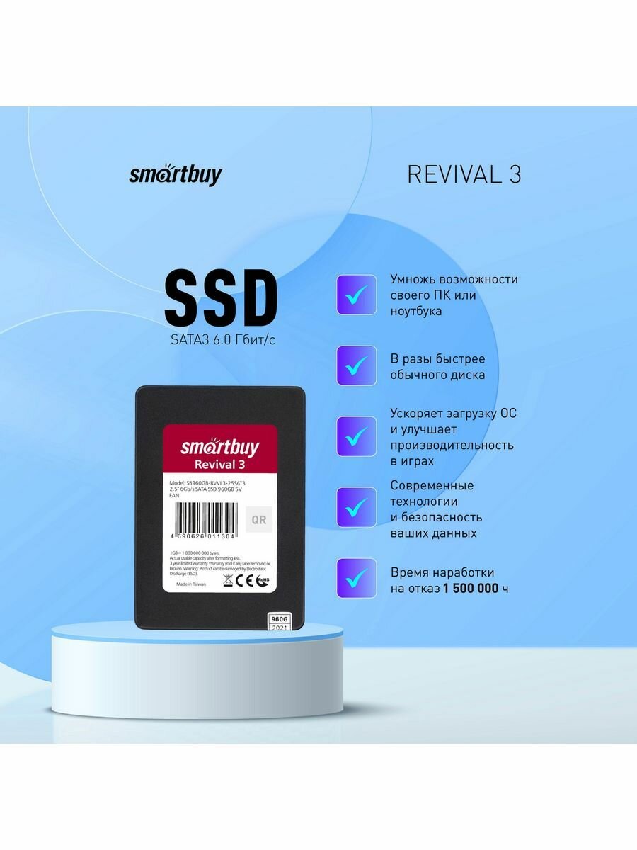 SSD диск Smartbuy 2.5" Revival 3 960 Гб Sata III 3D TLC Nand (sb960gb-rvvl3-25sat3) SB960GB-RVVL3-25