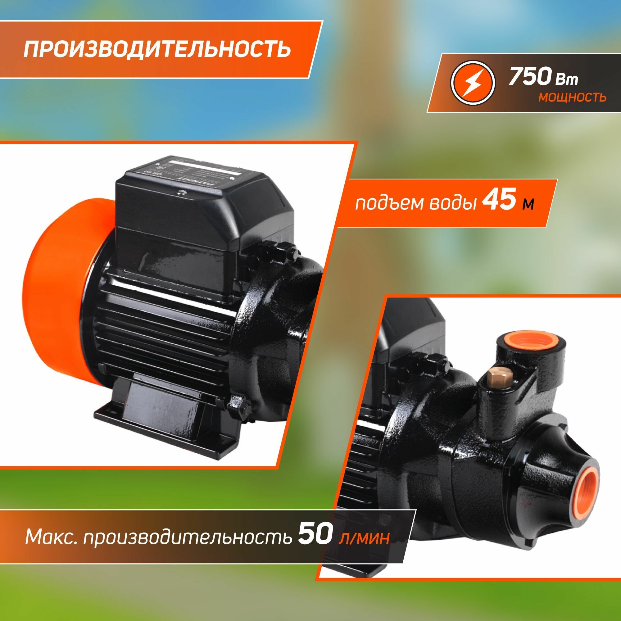 Поверхностные насосы Насос вихревой, Patriot, 1 '', 1 м, 750 Вт, глубина погружения 7 м, максимальный напор 45 м, 3 м³/ч, QB-80