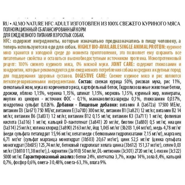 ALMO NATURE HFC M-L ADULT CHICKEN для взрослых собак средних и крупных пород со свежей курицей (8 кг)