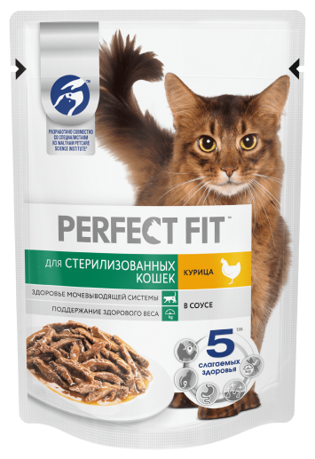 Влажный корм Perfect Fit для стерилизованных кошек, курица в соусе, 75 г