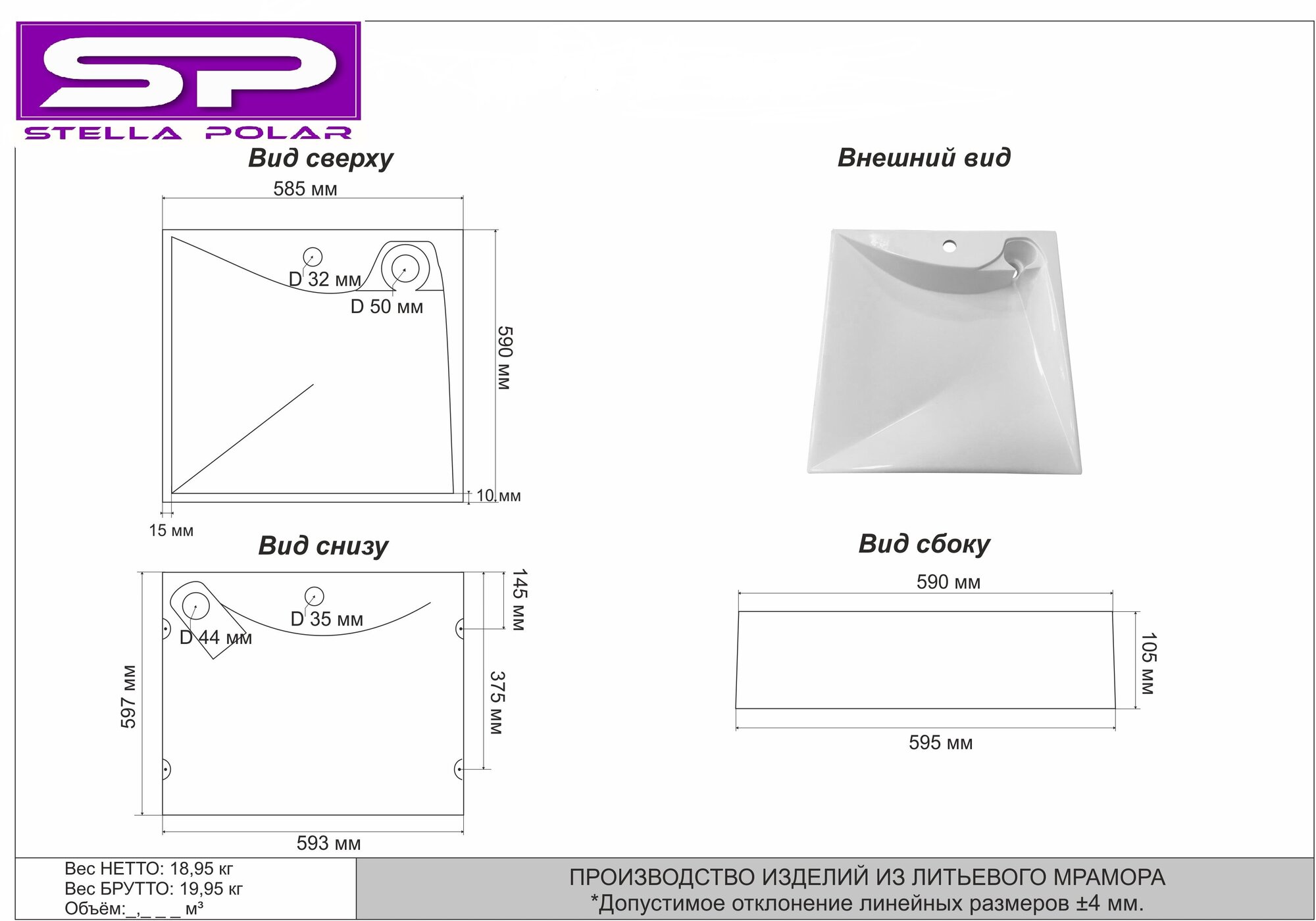 Раковина над стиральной машиной Stella Polar Турин 60х60 с кронштейнами (SP-00000508)