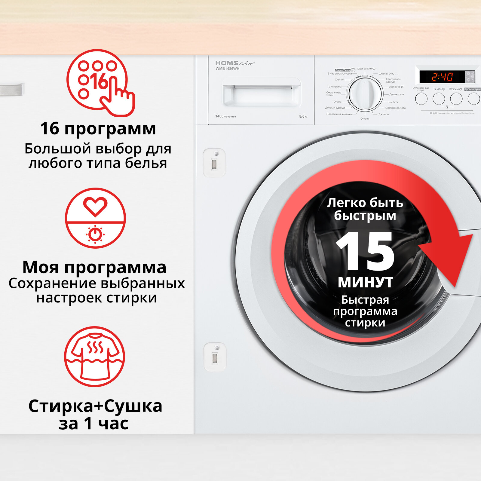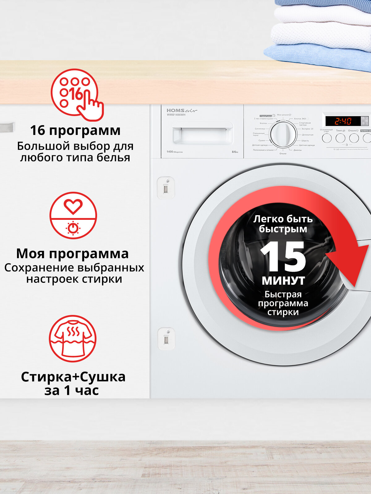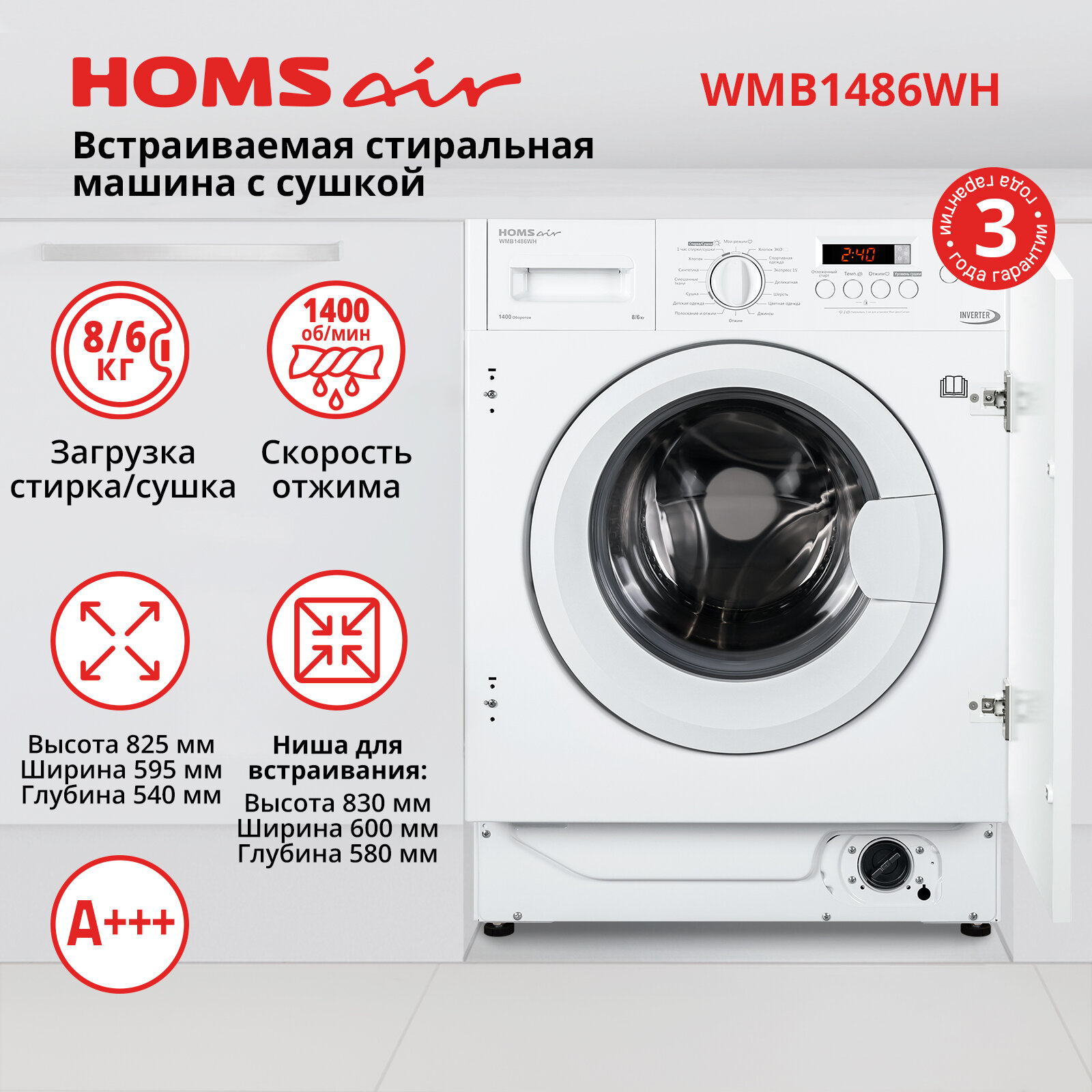 Встраиваемая стиральная машина с сушкой HOMSair WMB1486WH