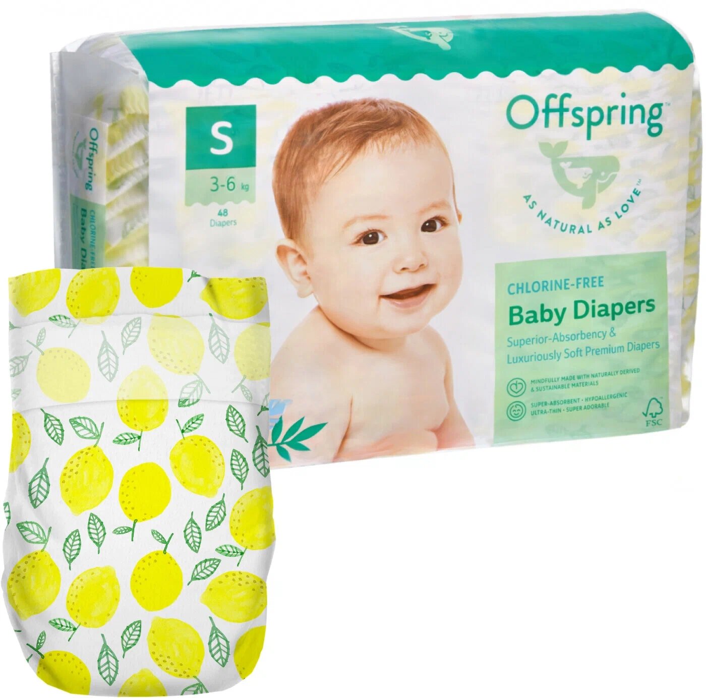 Offspring Подгузники размер S, расцветка "Лимоны" 1200 г