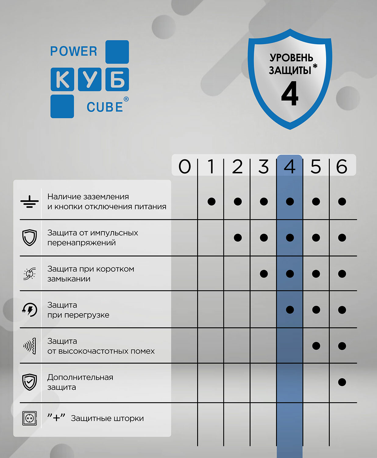 | Защита | от короткого замыкания / от перегрузки / от скачков напряжения (варистор) / автоматический предохранитель |