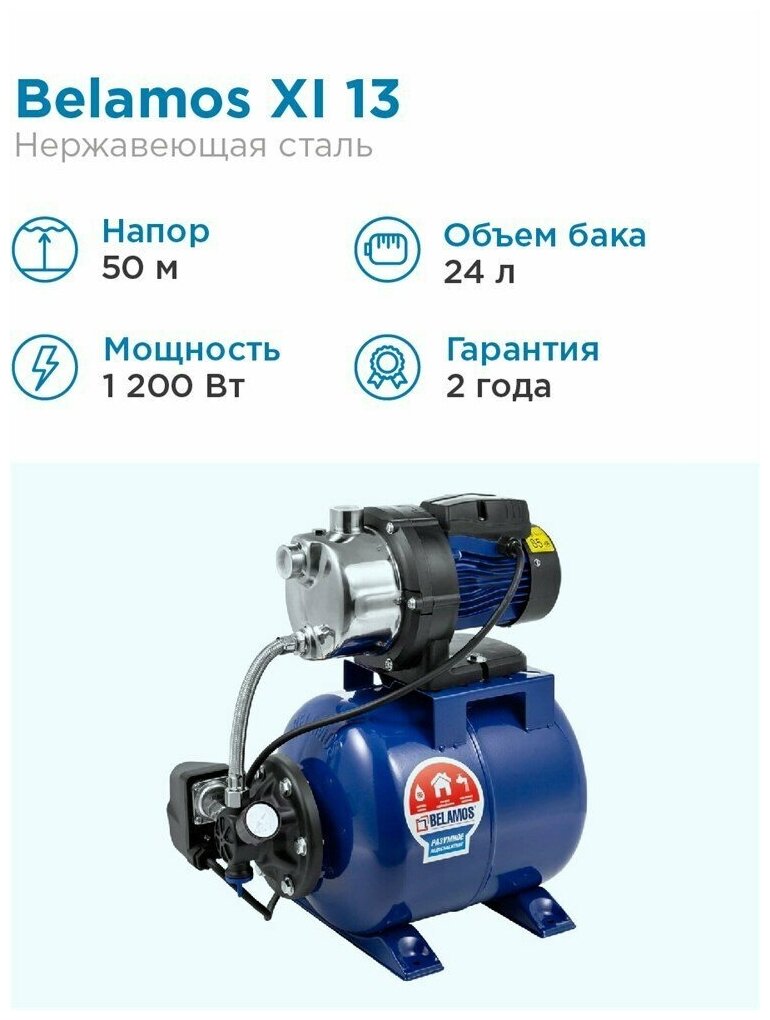 Тепловые насосы Насосная станция Belamos XI 13 ALL, 1200 Вт, 80 л/мин, Н-48 м, нерж.сталь