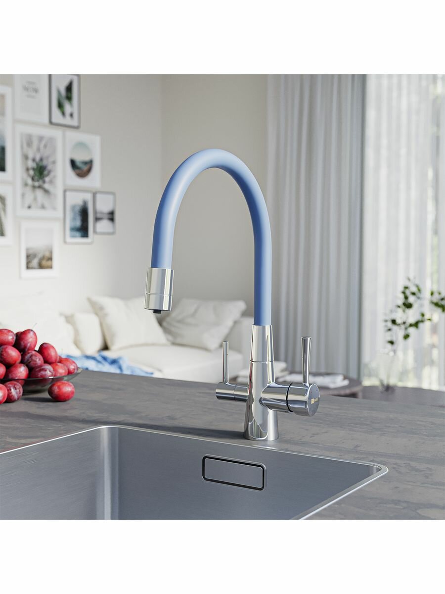 Смеситель Lemark Comfort LM3075C-SkyBlue для кухни с гибким изливом, с подключением к фильтру с питьевой водой