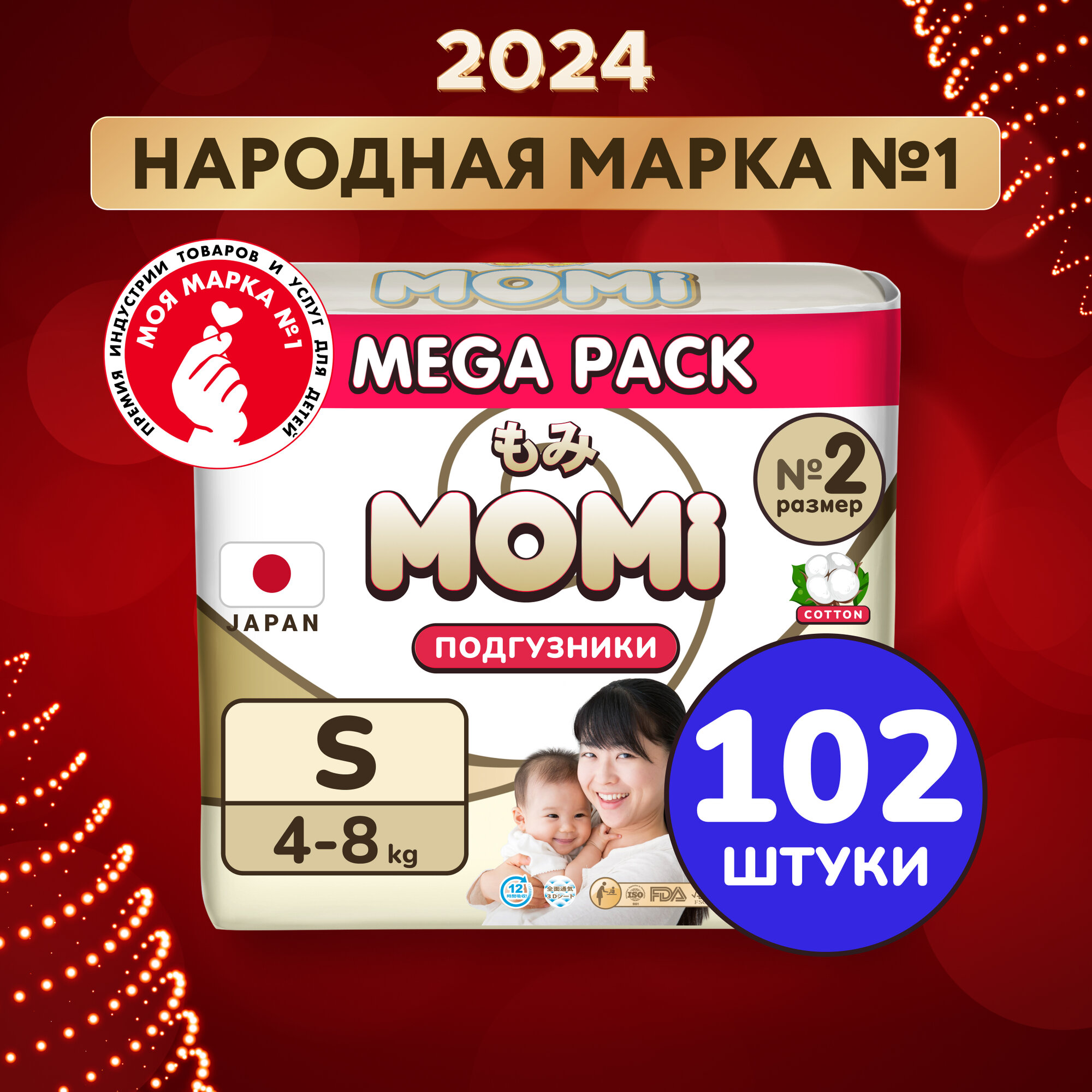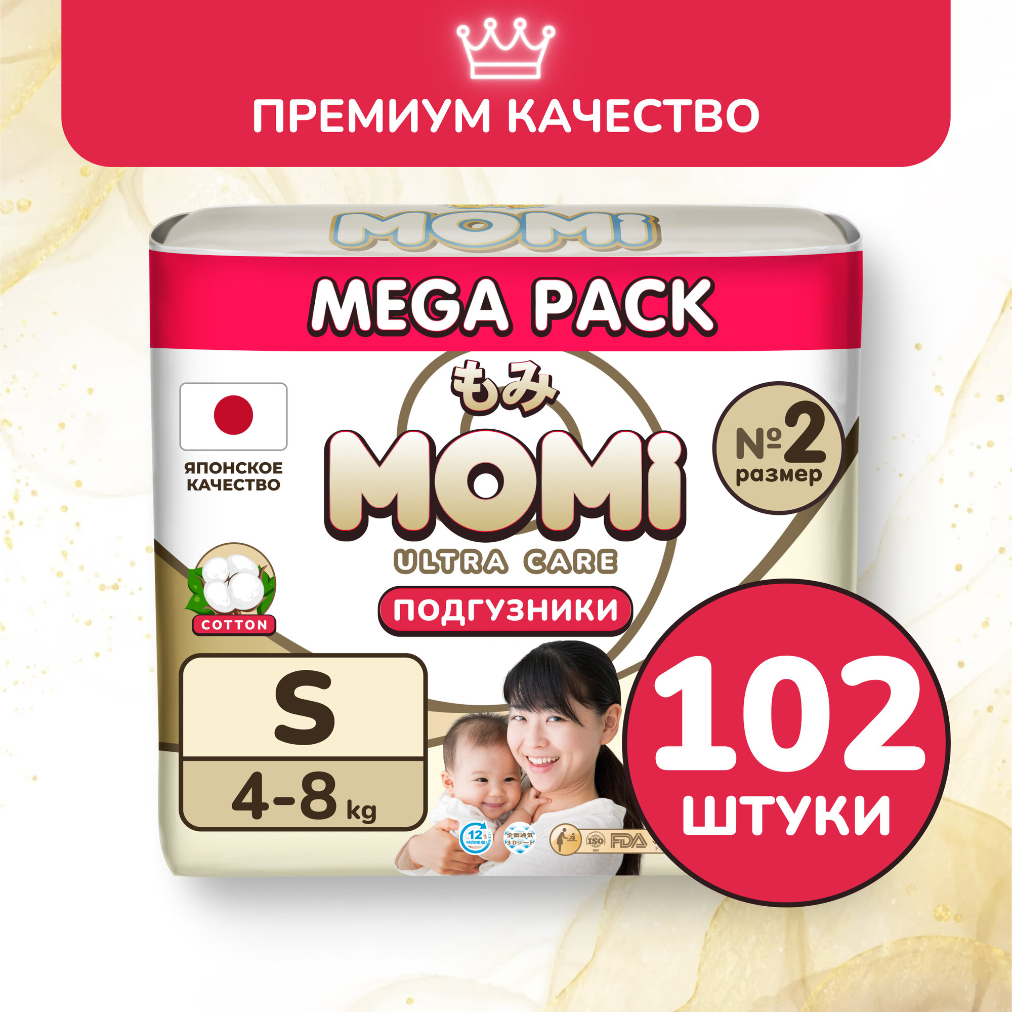 Подгузники (памперсы) Momi Подгузники детские 4-8 кг размер 2 S 102шт ULTRA CARE MEGA pack