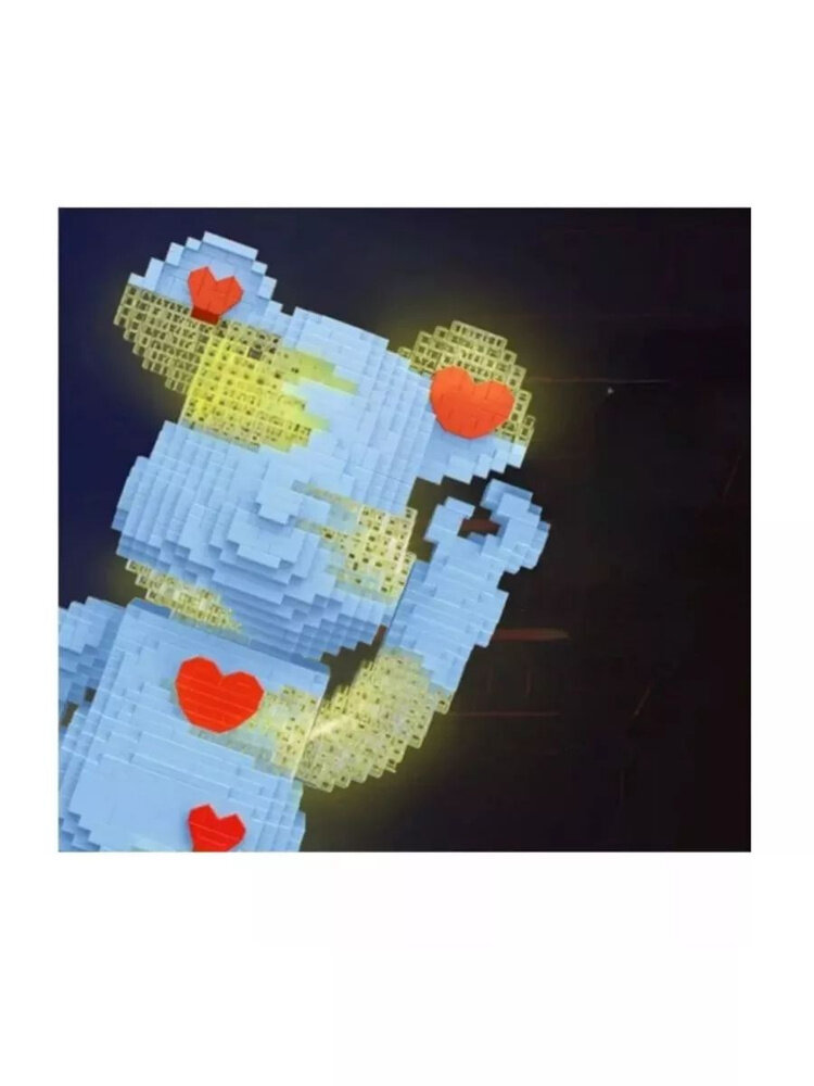 Конструкторы Конструктор "Голубой светящийся коллекционный медведь с сердечком" из миниблоков 2630 деталей
