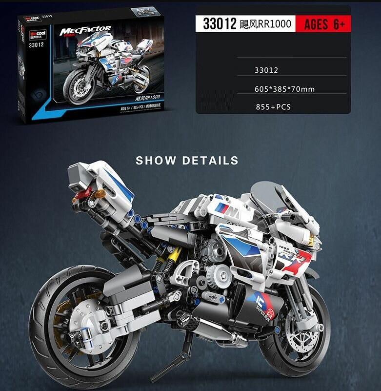 Конструкторы Конструктор 33012 "Мотобайк Ураган RR1000", 855 деталей