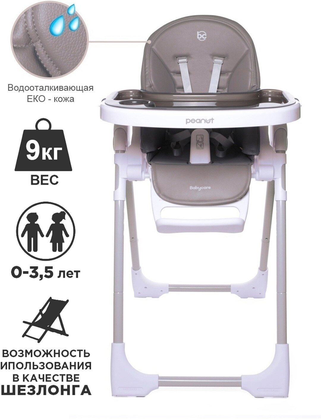 Стульчики для кормления Стульчик для кормления детский Babycare PEANUT с 6 месяцев, тёплый серый