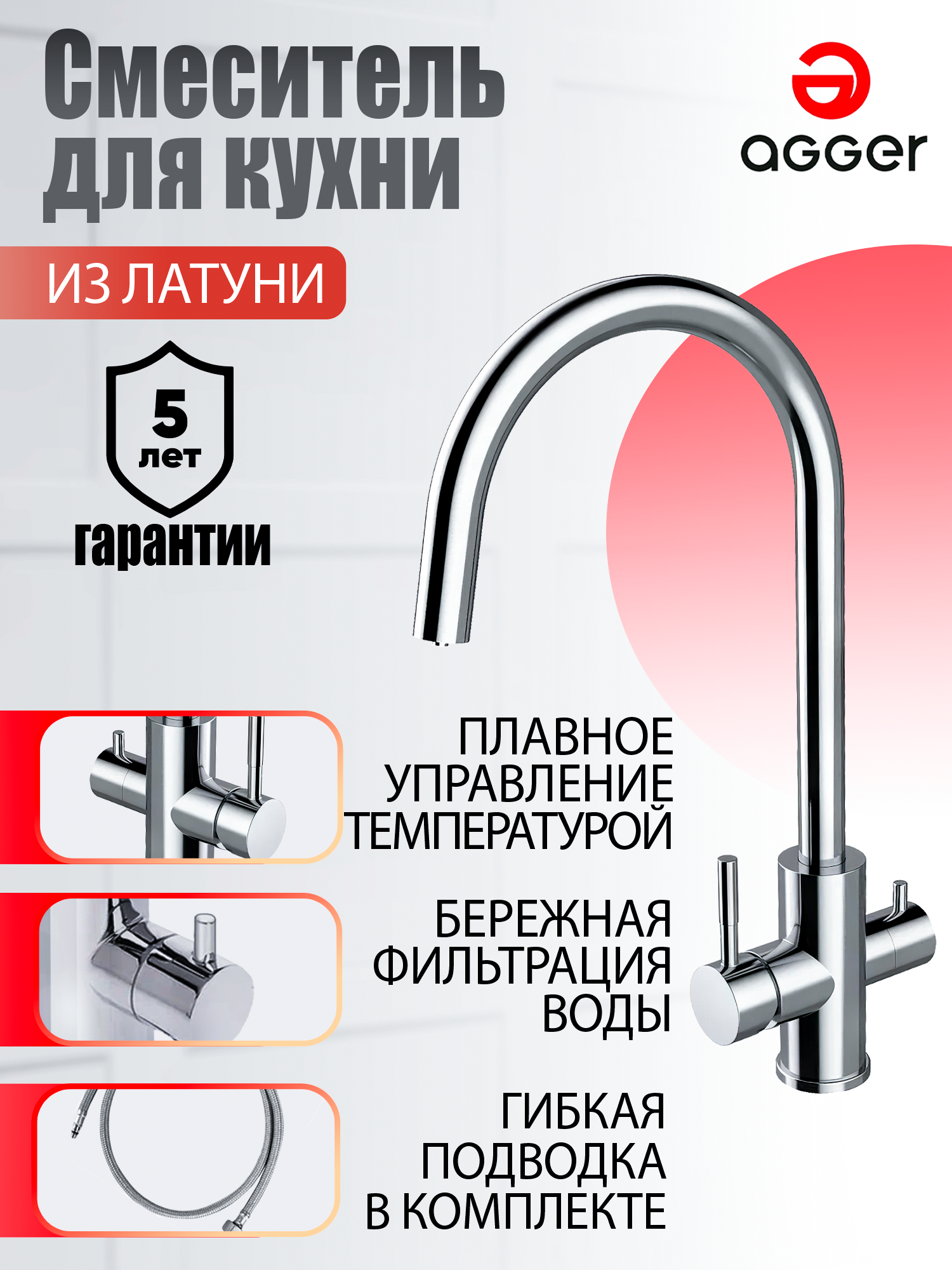 Смеситель для кухни на мойку с фильтром для питьевой воды Agger A0700700 цвет хром