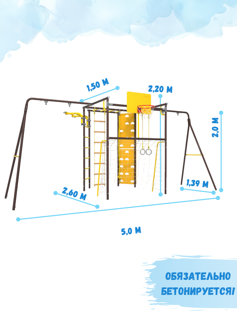 Игровая спортивная площадка «УДСК-7.3 Атлет-К2» Rokids, цвет: Шоколад, ступени: противоскользящие, качели: со спинкой и гнездо 75