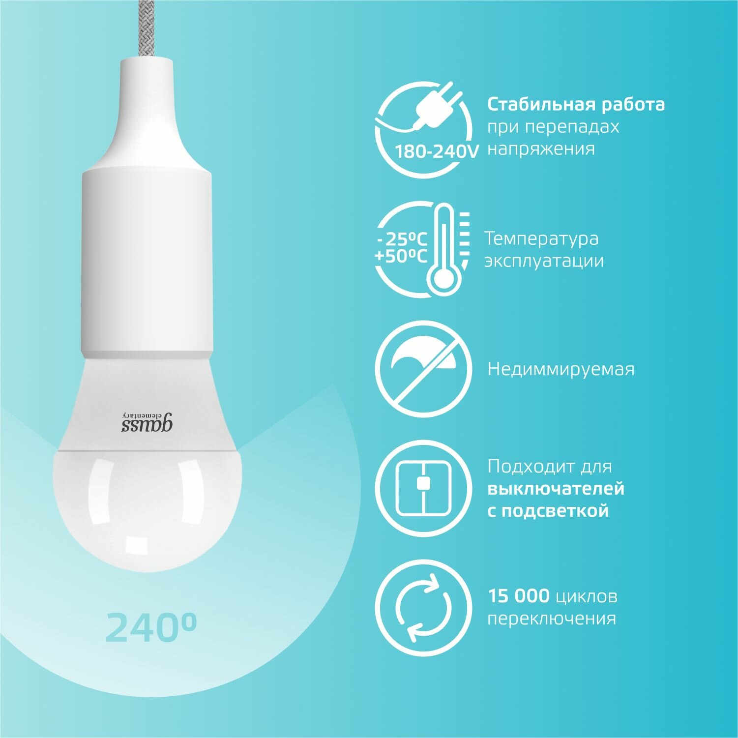 Лампочка светодиодная E27 Шар 6W холодный белый свет 6500К упаковка 10 шт. Gauss Elementary 969 ₽ Подробнее