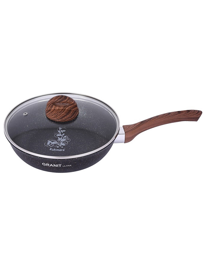 KUKMARA Сковорода Granit ultra, d=26 см, стеклянная крышка, съёмная ручка, антипригарное покрытие