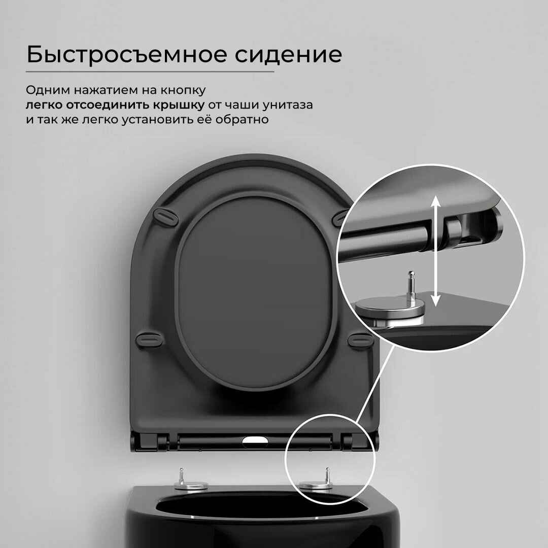 Подвесной унитаз Ceramicanova Balearica CN6000MB с микролифтом, безободковый Чёрный Матовый 35 990 ₽ Подробнее