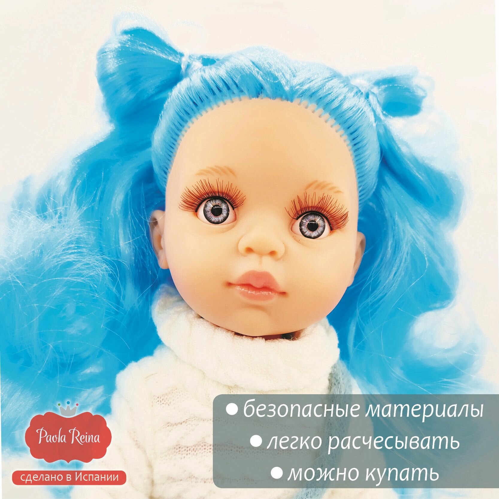 Испанская виниловая кукла для девочки Paola Reina Кристи без одежды, 32 см (волнистые волосы, без челки, глаза зеленые), арт. 14777