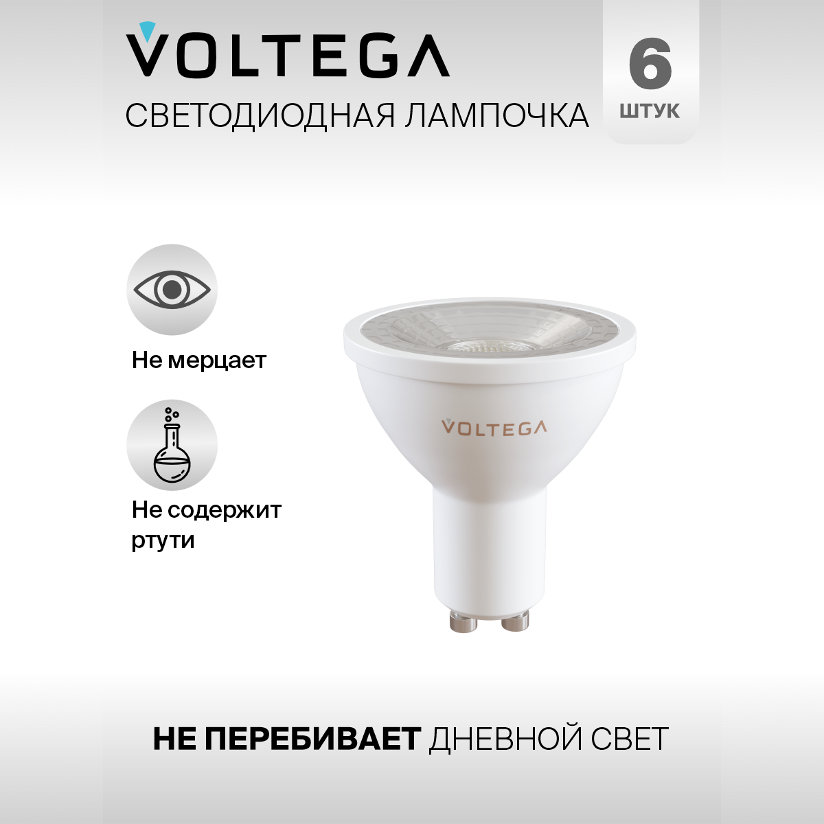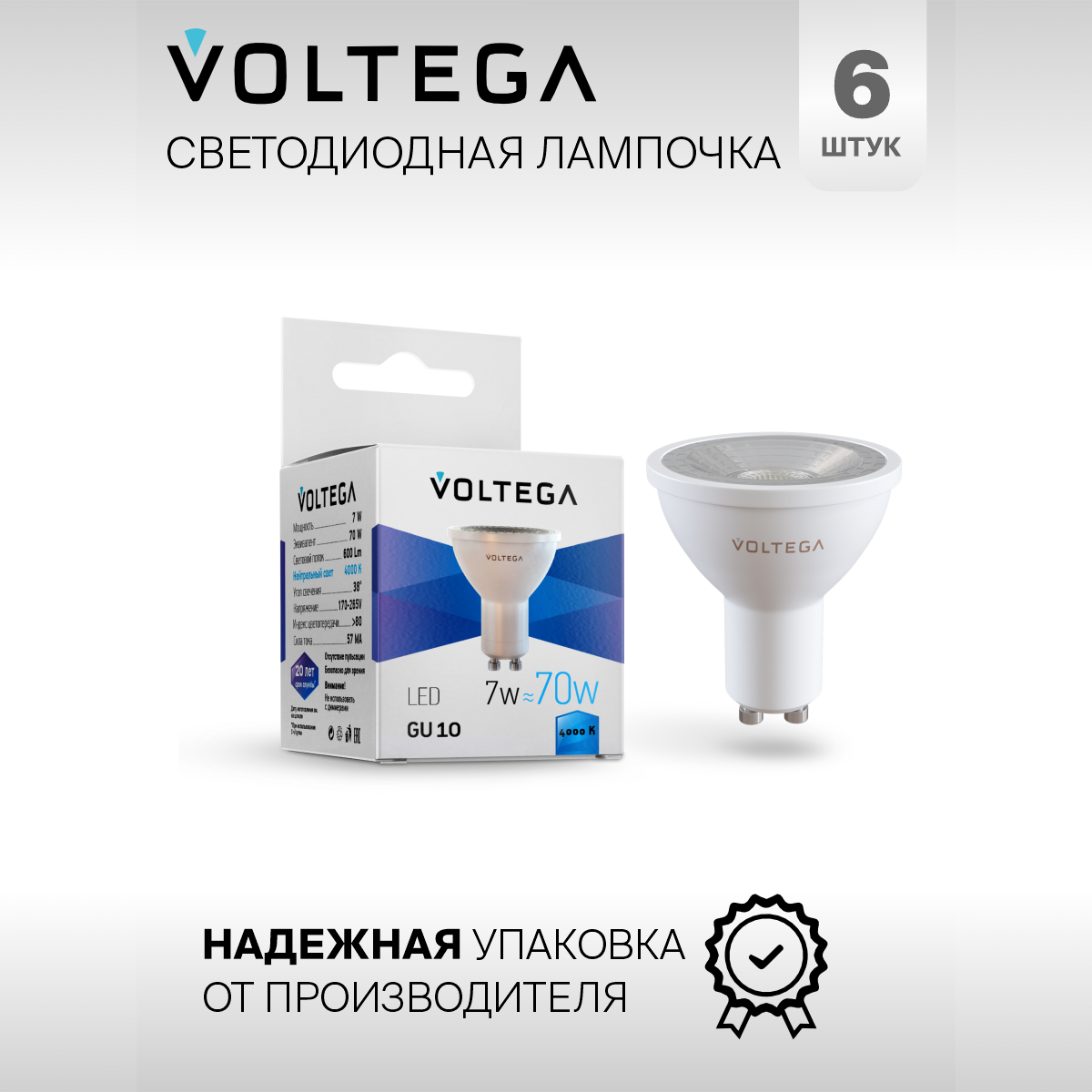 Лампочки Лампочка светодиодная GU10 форма софит 7W нейтральный белый свет Voltega Simple MR16 4000K упаковка 6 штук
