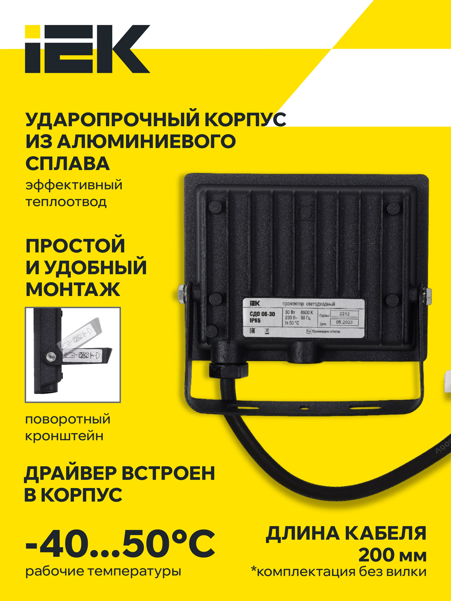 Прожектор Iek СДО 06-30 6500К IP65 черн. LPDO601-30-65-K02