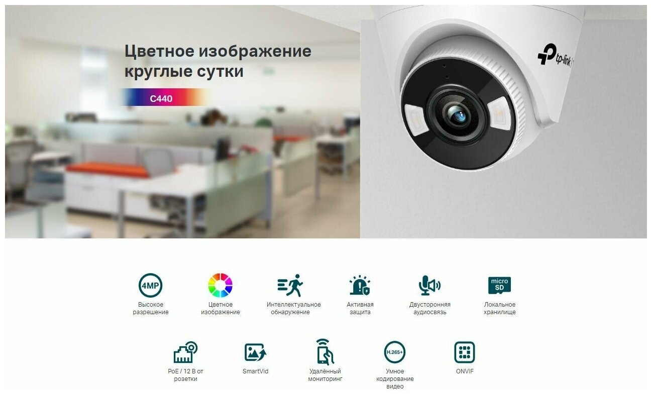 TP-Link VIGI C440(2.8mm) VIGI Цветная турельная IP-камера 4 Мп