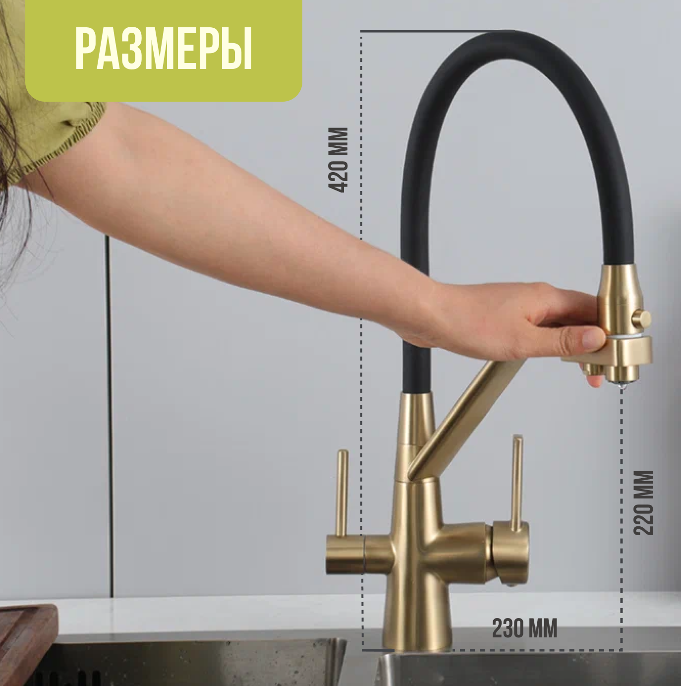 Смеситель для кухни с гибким изливом Frap F4398-5, с фильтром под питьевую воду, цвет сатиновый/черный, латунь 12 596 ₽ Подробнее