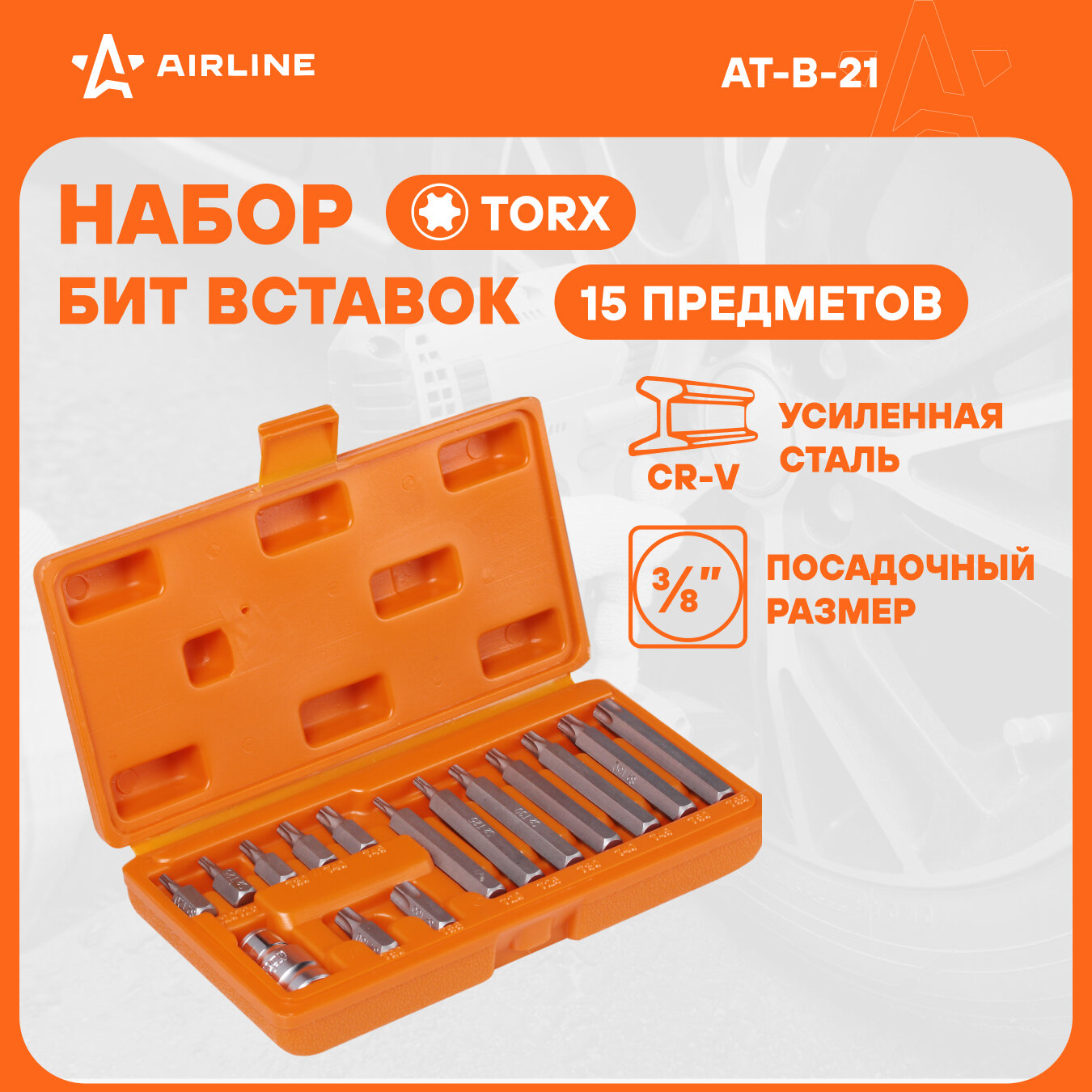 AIRLINE ATB21 Набор вставок-бит TORX (15 пр) в кейсе (AIRLINE)