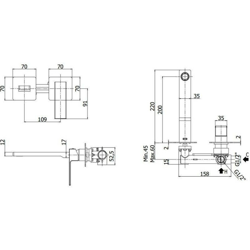 Смеситель скрытого монтажа для умывальника Paffoni ELLE EL105NO70
