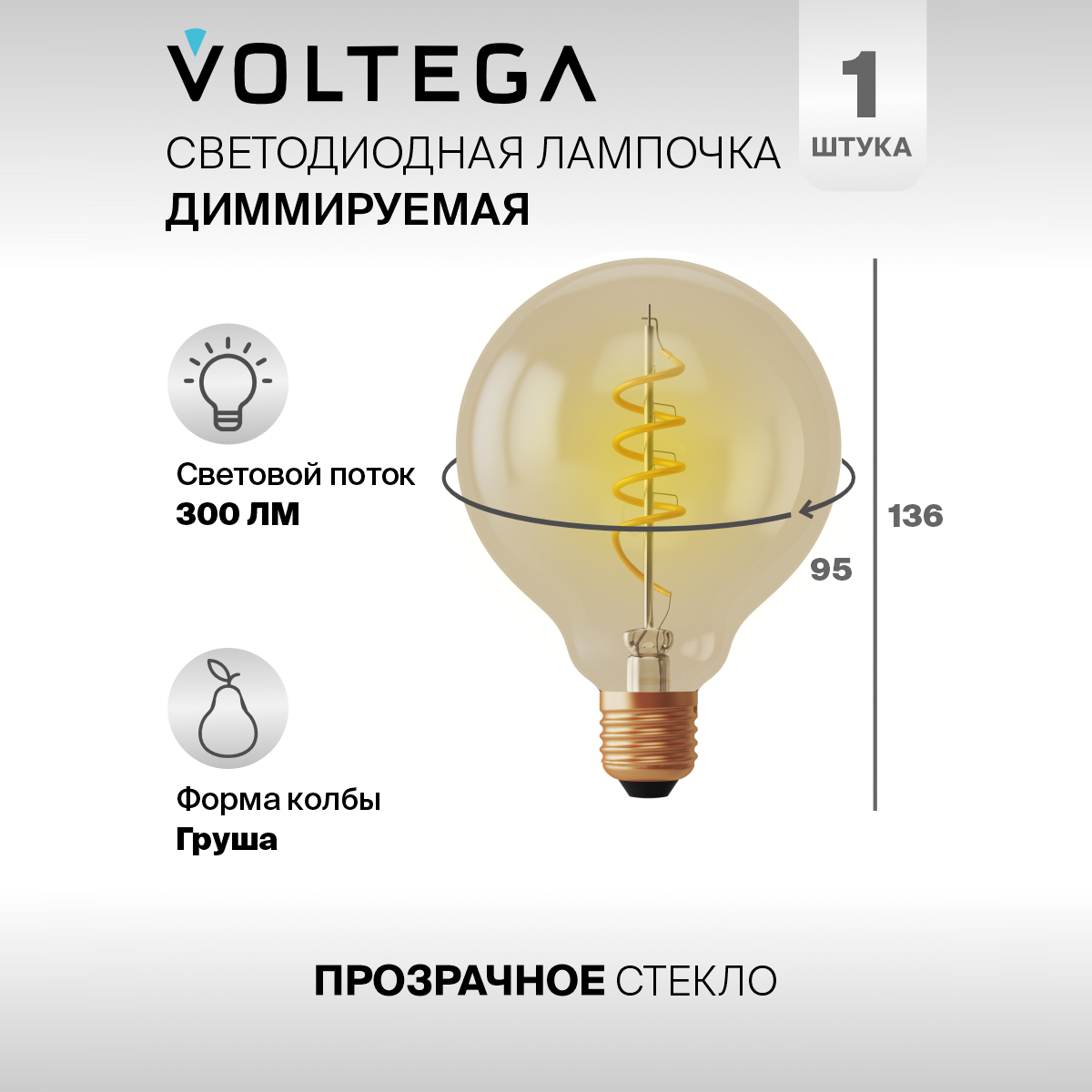 VOLTEGA Лампа светодиодная диммируемая Voltega E27 4W 2800К прозрачная VG10-G95GE27warm4W-FB 7076