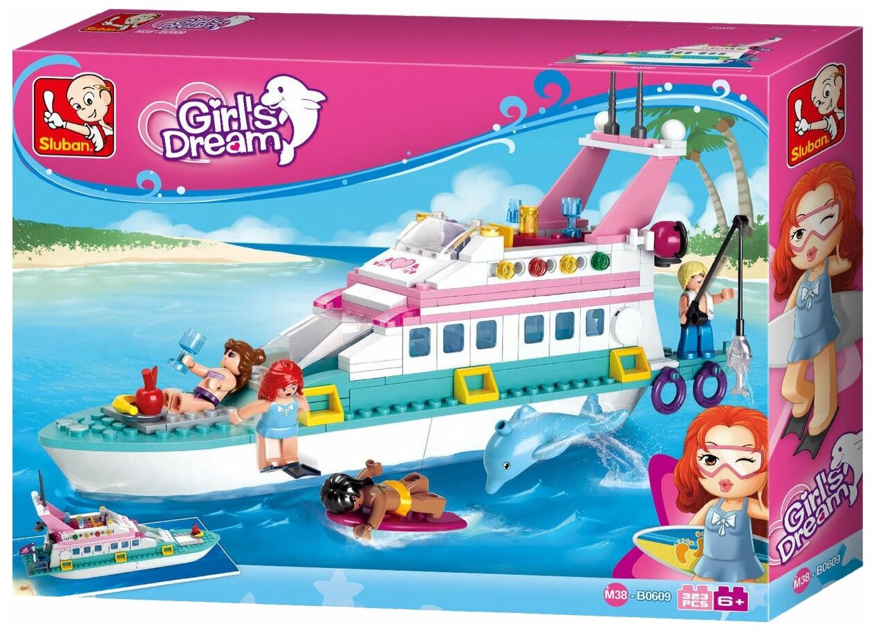 Конструкторы Конструктор SLUBAN Розовая мечта M38-B0609 Яхта люкс, 328 дет., 4 фигурки